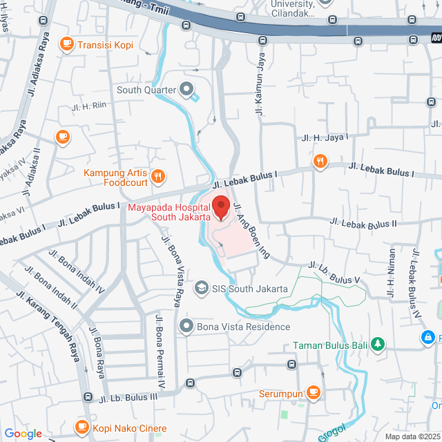 Mayapada Hospital Jakarta Selatan (MHJS). Jl. Lebak Bulus I No.Kav. 29, RT.6/RW.4, Lb. Bulus, Kec. Cilandak, Kota Jakarta Selatan, Daerah Khusus Ibukota Jakarta 12440, Indonesia